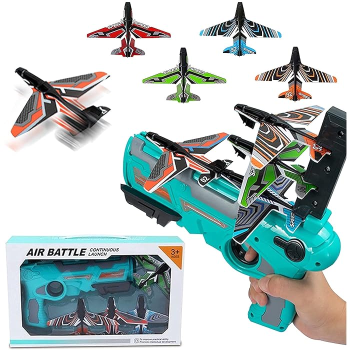 Airplane Launcher Toy. Combined a plastic shooting toy gun and four foam glider airplanes. This 2 in 1 innovative catapult plane toy can give children the dual fun of aircraft games and shooting games. This airplane toy is made of safe materials, does not require batteries, and can be played anytime and anywhere to enhance parent-child interaction.