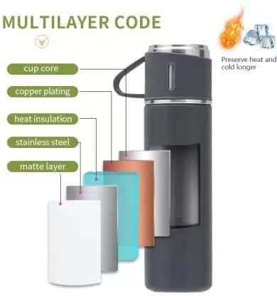 Premium Stainless Steel Thermo 500ml Vacuum Insulated Bottle Water Flask Gift Set with Two Cups Hot & Cold