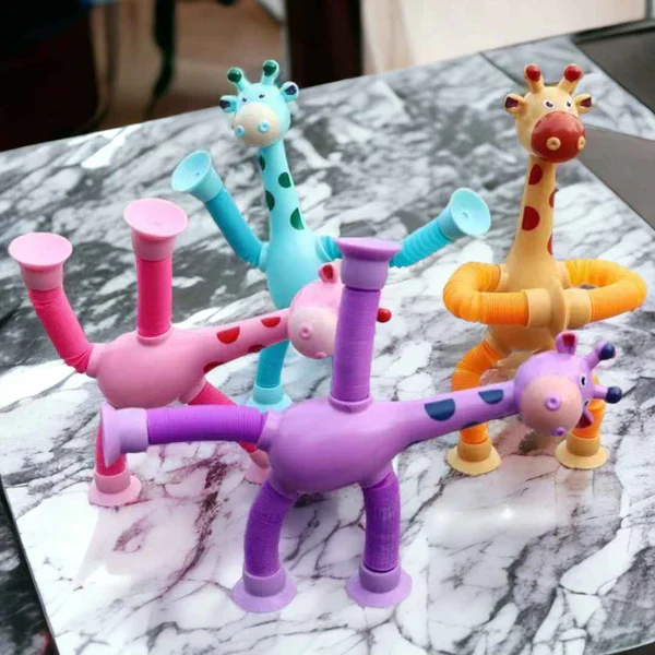 The Telescopic Suction Cup Giraffe Toy is designed to promote the development of fine motor skills, hand-eye coordination, and problem-solving abilities. Each piece consists of tubes that stretch and rotate, allowing children to connect and disconnect them in various ways. The possibilities are endless as kids twist, bend, and shape the toy into their own unique creations. Let their imagination run wild as they build, twist, and manipulate the tubes to form all sorts of fun shapes.